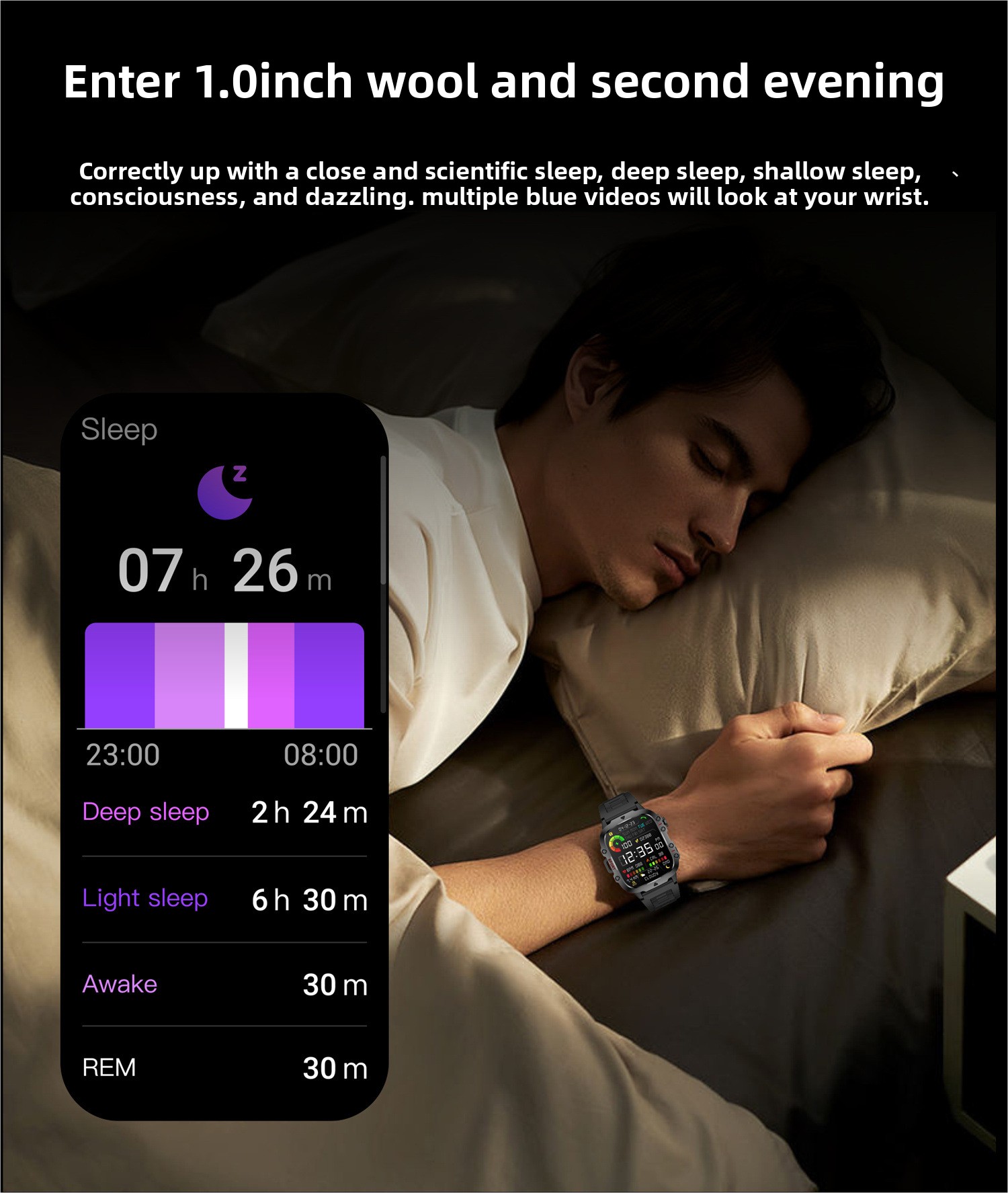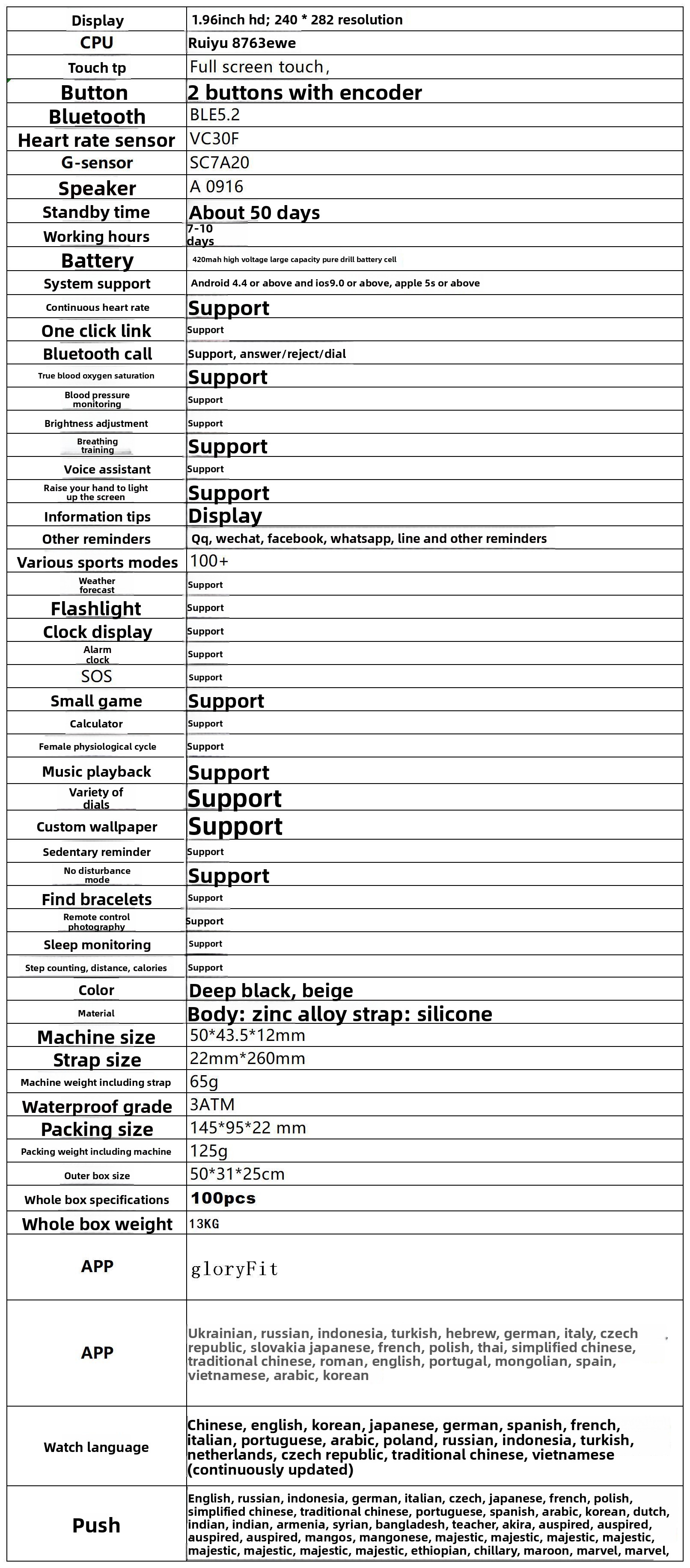 Sensors: Heart rate, blood oxygen, sleep monitoring.
